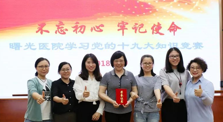 为进一步深入学习宣传贯彻党的十九大精神,6月20日下午,曙光医院党办、工会在全院组织开展了学习党的十九大精神知识竞赛活动。竞赛活动得到了全院广大党员、职工和青年学生的热烈响应。经过精心组织筹备,医院行政、东院医生、西院医生、东院护理(2支队伍)、西院护理(2支队伍)、医技、财务后勤、规培、学生共计11支代表队同场竞技。