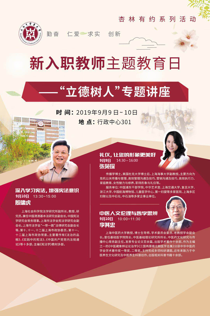 活动通知:“杏林有约”系列活动——“立德树人”专题讲座暨新入职教师主题教育日