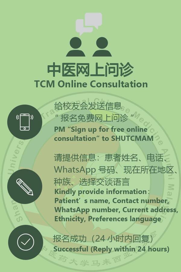 为了满足当地民众在疫情期间渴望得到中医药健康指导的需求,近日,上海中医药大学马来西亚校友会发挥中医药优势,依托母校资源,发起免费中医网上问诊活动,开展新冠肺炎健康宣教,让民众居家也能及时得到专业指导。咨询者报名成功后,医师会在24小时内与报名者取得联系。活动期间,马来西亚校友会也将得到来自母校的支持与指导。