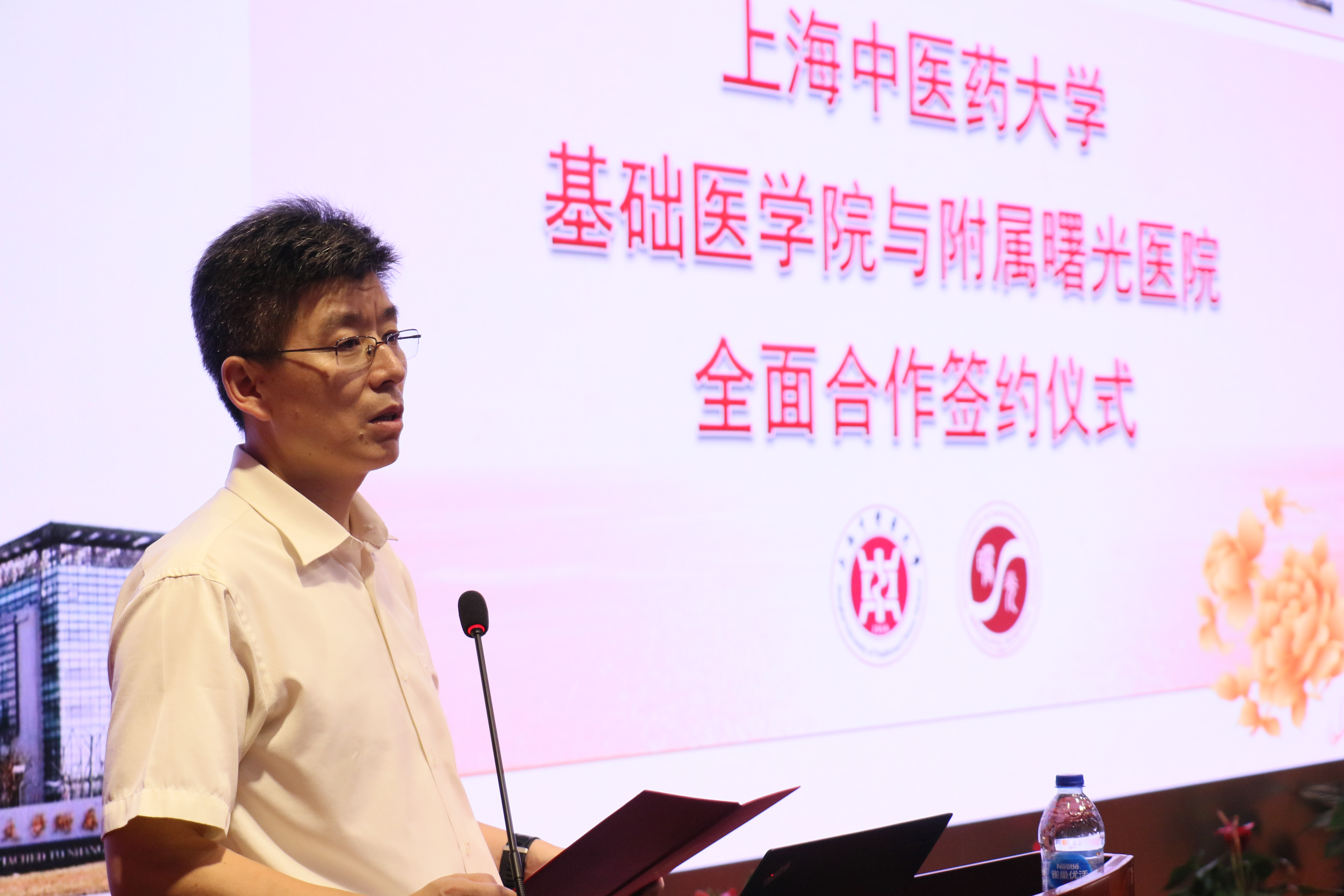 6月23日下午,我校附属曙光医院与基础医学院全面合作共建签约仪式在曙光医院东院学术报告厅举行。我校副校长杨永清、基础医学院党委书记陈晓、院长许家佗,院党委副书记陆佩丽、副院长吕嵘和郑月娟、曙光医院党政领导班子、曙光医院和基础医学院的相关科室主任、教师科研人员代表等100余人参加。签约仪式由曙光医院党委书记马俊坚主持。