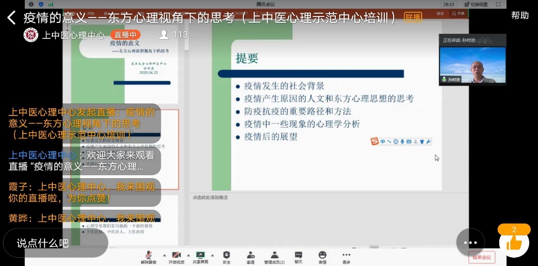 第二讲 疫情的意义一一东方心理视角下的思考(孙时进)