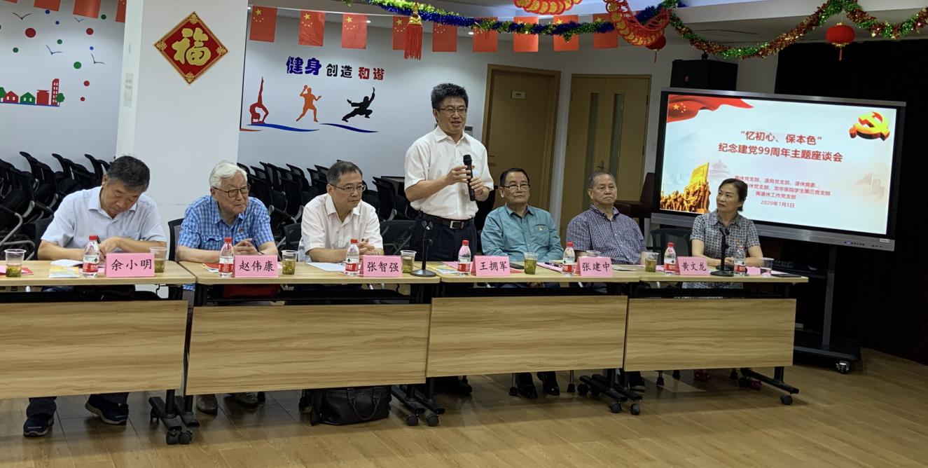 7月1日上午,校离休党支部、退休局级干部党支部、退休党委、附属龙华医院离退休党支部、龙华医院学生第三党支部以及离退休工作党支部联合举办“忆初心、保本色”庆祝建党99周年主题座谈会暨“四史”专题学习会。我校副校长王拥军出席会议,30多位离退休党员与学生座谈交流,会议由离退休工作处处长、离休党支部副书记蔡贞贞主持。