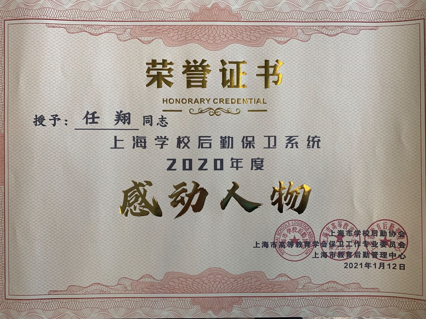 我校后勤保障处、保卫处任翔分获上海市学校后勤保卫系统2020年度“敬业团队”“感动人物”荣誉称号