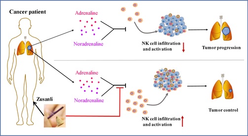 日前,上海中医药大学基础医学院中医药免疫研究中心朱诗国课题组与针灸推拿学院赵琛课题组的合作研究成果Grain-sized moxibustion promotes NK cell antitumor immunity by inhibiting adrenergic signaling in non-small cell lung cancer在国际知名期刊Journal of Cellular and Molecular Medicine上在线发表。