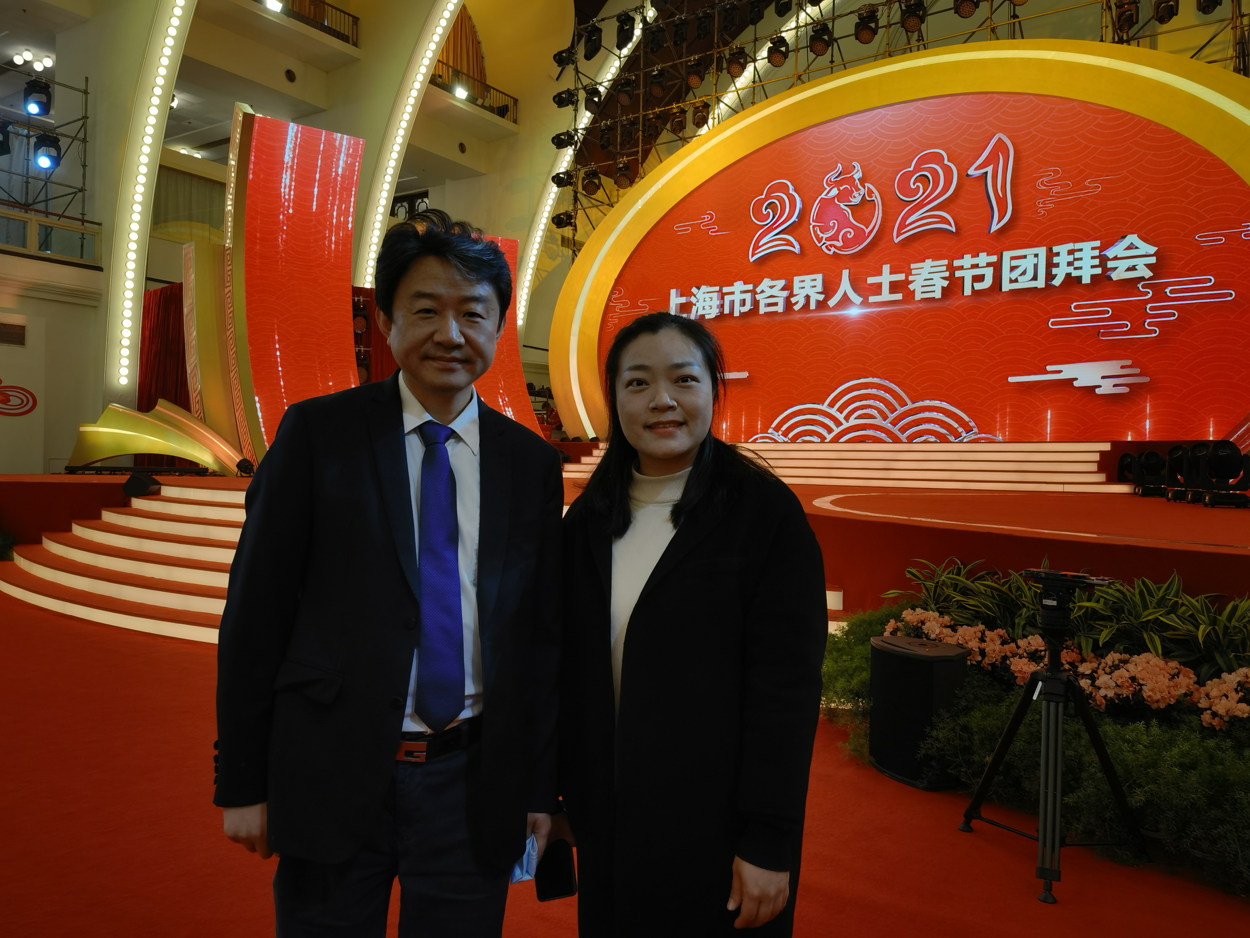 2月9日上午,上海市各界人士欢聚上海展览中心中央大厅,出席2021年春节团拜会。上海市领导李强、龚正、蒋卓庆、于绍良与各界嘉宾一起,共同祝愿伟大祖国繁荣昌盛、上海明天更加美好、全市人民幸福安康。学校系统樊民和黄凤作为抗击新冠肺炎疫情优秀共产党员代表参加。