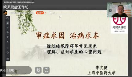 教师心理赋能工作坊共五讲,邀请了我校中医心理专家李兆健教授,上海市精神卫生中心主任医师何燕玲,上海市精神卫生中心临床心理科主任、心身医学特色学科负责人陈珏,上海市精神卫生中心医务部主任、主任医师姚培芬,复旦大学社会发展与公共政策学院党委副书记、副教授刘明波,分别就“身心关系”“疾病识别”“危机发现”“转介流程”“关系建立”五大主题开展培训。