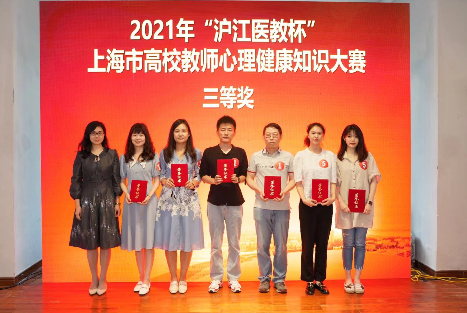 5月27日,由上海学生心理健康教育发展中心指导,上海理工大学承办,杨浦区精神卫生中心协办的2021年“沪江医教杯”上海市高校教师心理知识大赛举办。经校内初赛和上海市复赛,上海市共有十二所高校及精神卫生单位、二十四名教师及医生入围决赛,经过激烈角逐,钱倩和邓炜作为我校参赛代表获大赛三等奖,我校获优秀组织奖。