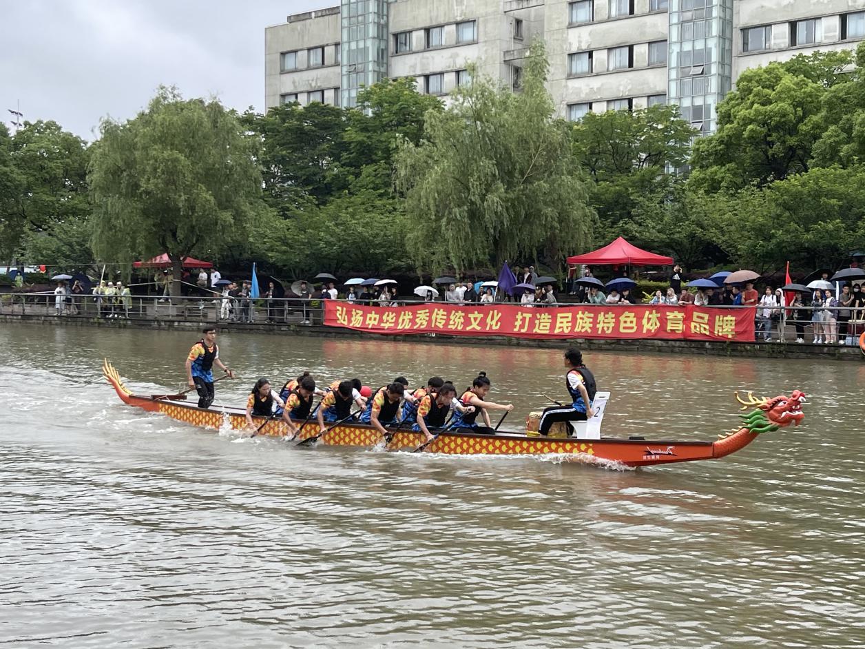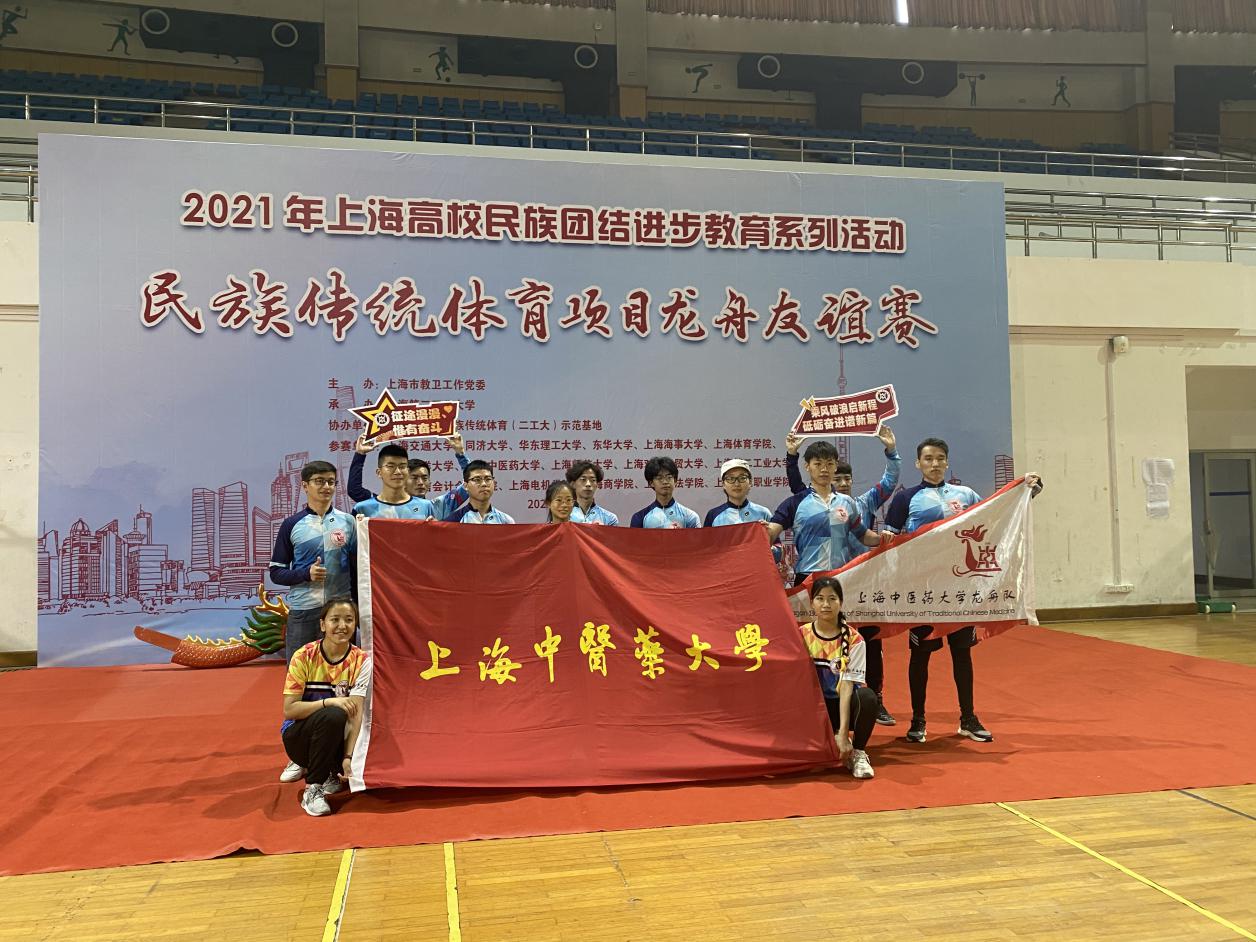 在上海高校民族传统体育项目龙舟友谊赛中,由各民族学生共同组成的上海中医药大学龙舟队代表学校参赛,并取得了二等奖。面对各高校龙舟队的强势表现,我校龙舟队队员在赛道上团结一心、齐心协力、奋楫争先,展现了顽强的意志和拼搏精神,彰显了我校学子高昂向上的精神风貌,凝聚了拼搏进取的青春正能量。