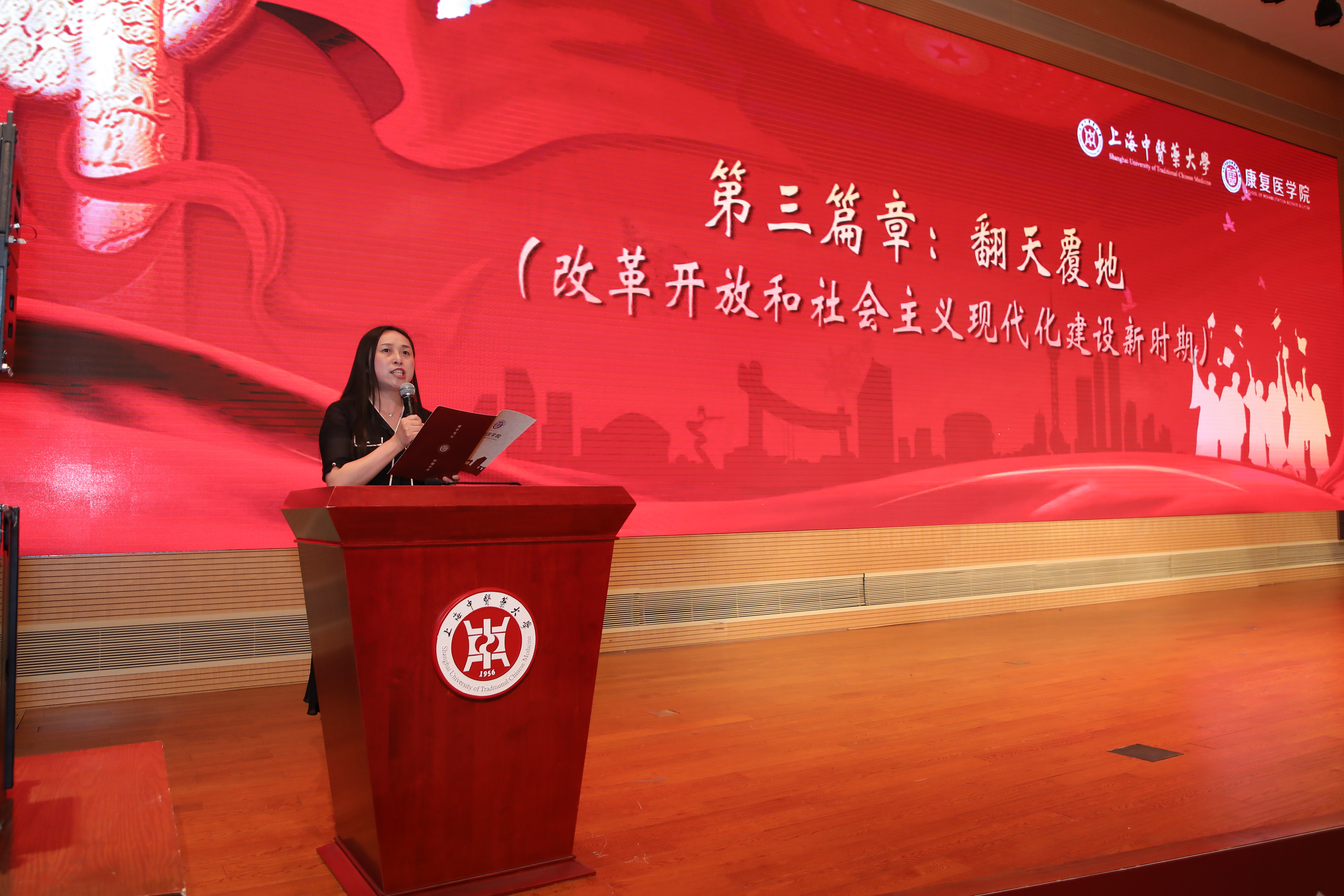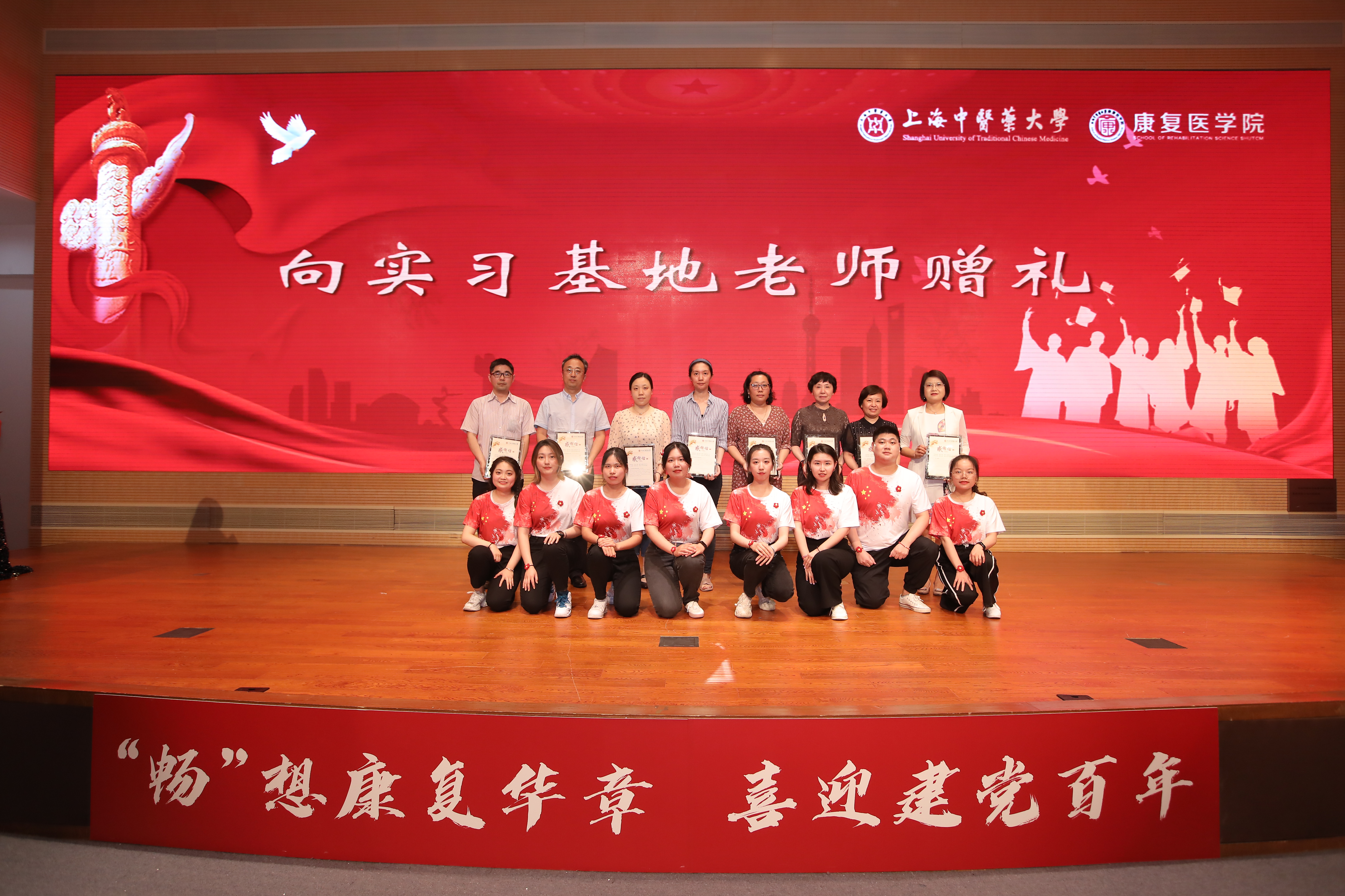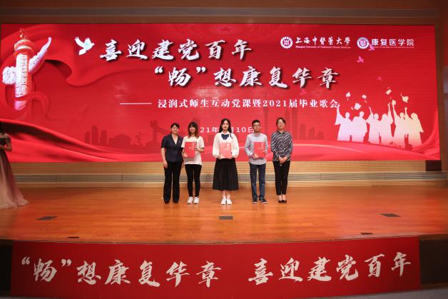 6月10日晚,康复医学院创新党史学习教育形式,“喜迎建党百年 ‘畅’想康复华章”浸润式师生互动党课暨2021届毕业歌会在图书馆四楼报告厅举行。我校副校长杨永清,上海市康复医学会常务副会长郑洁皎,校终身教授、康复医学院名誉院长严隽陶出席。党校办、宣传部、纪委、教务处、学工部、团委等职能部门和兄弟学院领导热情参与,康复医学院将讲、演、唱、跳等方式结合,既注重形式载体创新,又挖掘一系列红色歌曲内涵,以重新演绎经典的方式呈现党的百年历史,生动立体、全面深刻地描绘一幅幅波澜壮阔的历史画卷,将党史学习教育与大学毕业季主题教育紧密结合。