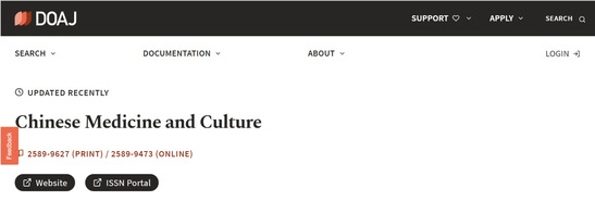 Chinese Medicine and Culture《中医药文化(英文)》被DOAJ数据库收录