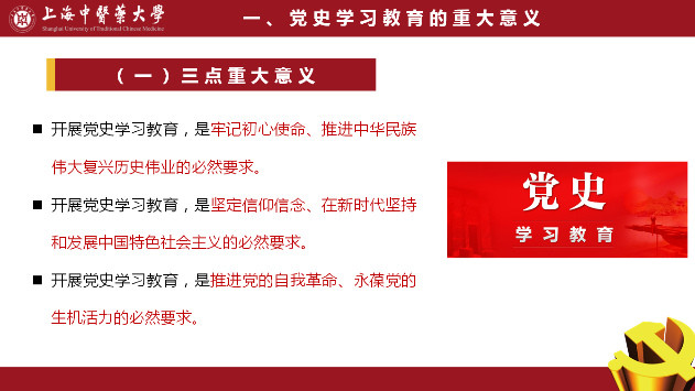 段艳霞强调党史学习教育的十六字总要求:学史明理、学史增信、学史崇德、学史力行。点明只有学史明理,才能把握历史规律,明确历史发展走势和大方向。通过学习党史,要“明”中国共产党为什么能之“理”,“明”马克思主义为什么行之“理”,“明”中国特色社会主义为什么好之“理”,唯有如此方能行稳致远。