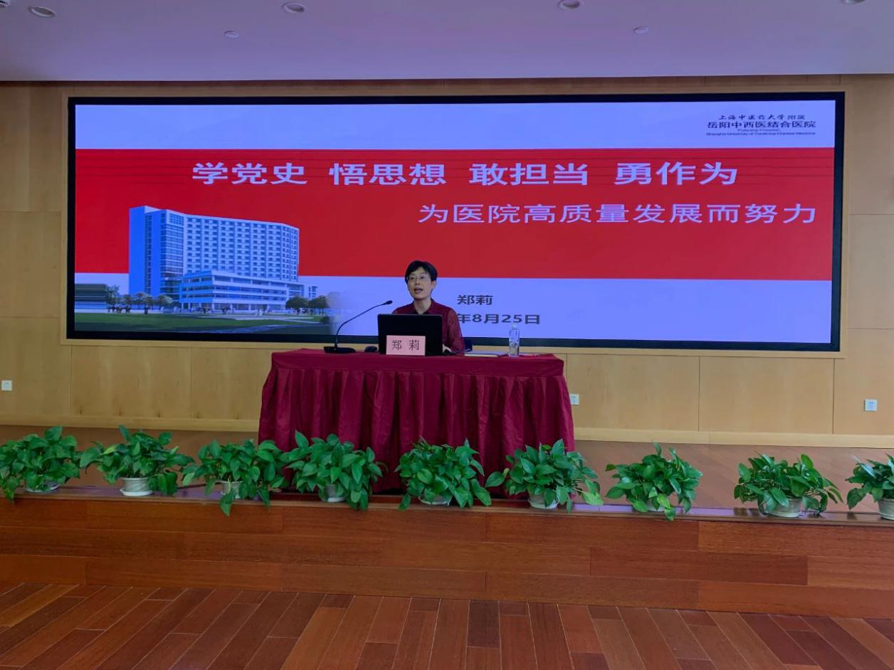理论教学,夯基础,强信仰。在学员自学《中国共产党章程》《入党教材》《中国共产党简史》等主要教材的基础上,上海中医药大学党建督导员陶建生,岳阳中西医结合医院党委书记郑莉、党委副书记赵庆、党委委员冯寿全带来一场场精彩教育党课,激励大家要以史为镜、抓住机遇,主动将学习教育成果转化为攻坚克难、干事创业的强大动力,以优异成绩庆祝中国共产党成立100周年。