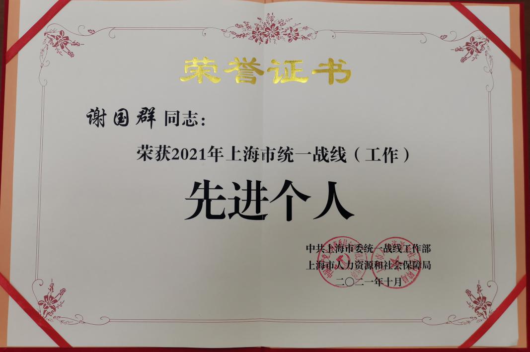 台盟盟员、我校谢国群获评为2021年上海市统一战线(工作)先进个人