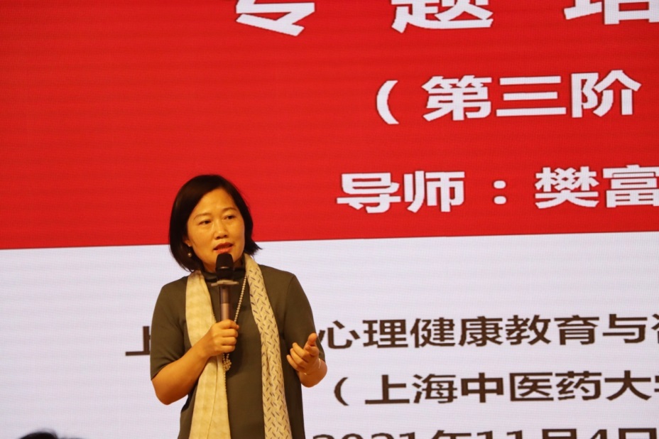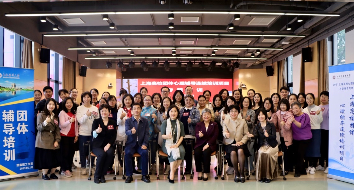 由上海市教委领导,上海学生心理健康教育发展中心指导,上海高校团体心理辅导第三阶培训于11月4日至11月7日在我校举行。清华大学心理系、北京师范大学临床与咨询心理学院院长樊富珉任导师,来自上海交通大学、复旦大学、同济大学、华东师范大学、上海师范大学、上海海洋大学等33所高校的50余名专、兼职心理咨询师和辅导员齐聚一堂,共同学习。