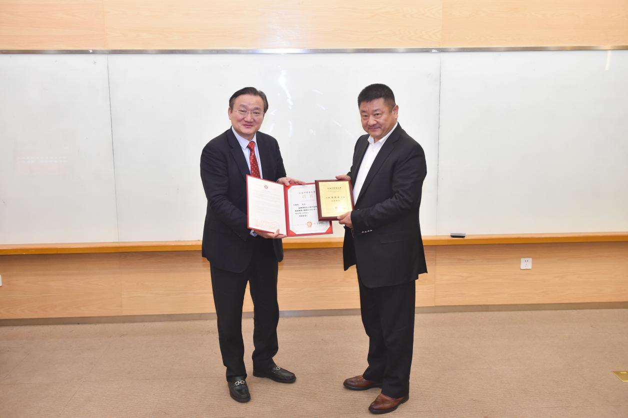 郭少辉向上海中医药大学教育发展基金会捐赠。徐建光向郭少辉颁发捐赠荣誉证书感谢信。