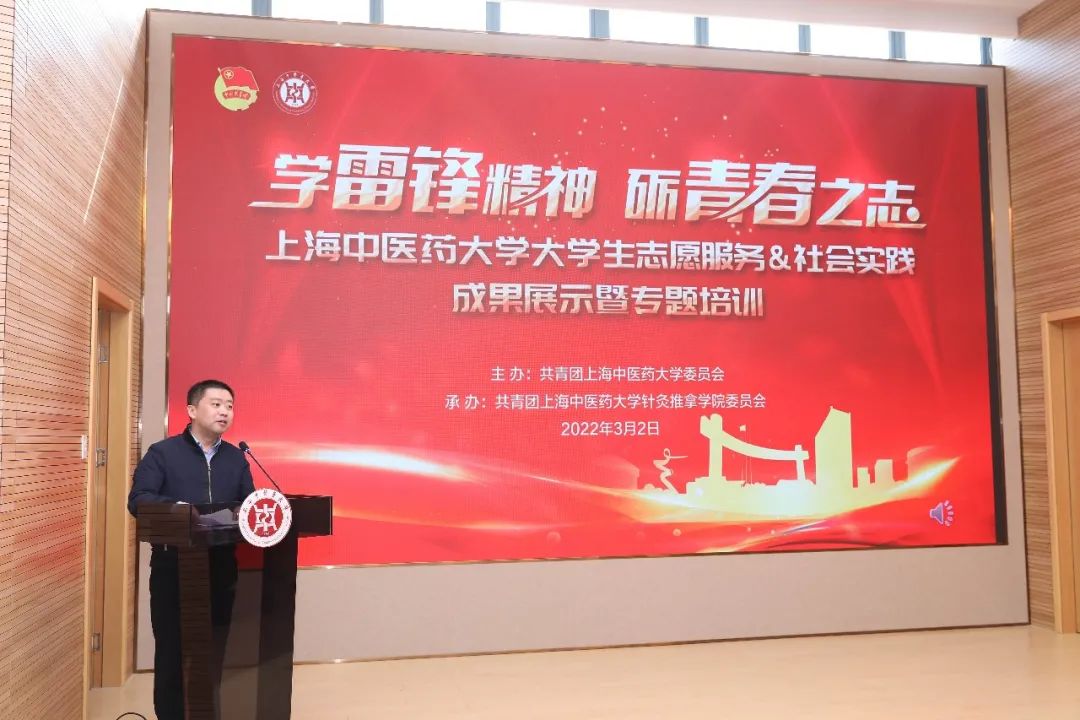 3月2日,“学雷锋精神 砺青春之志”上海中医药大学大学生志愿服务与社会实践成果展示暨专题培训在全球合作伙伴中心报告厅举行。我校党委副书记、副校长朱惠蓉,共青团上海市委学校工作部部长任浡,上海科技馆团委书记田家隆,我校职能部门、各二级学院相关负责人,师生代表出席。