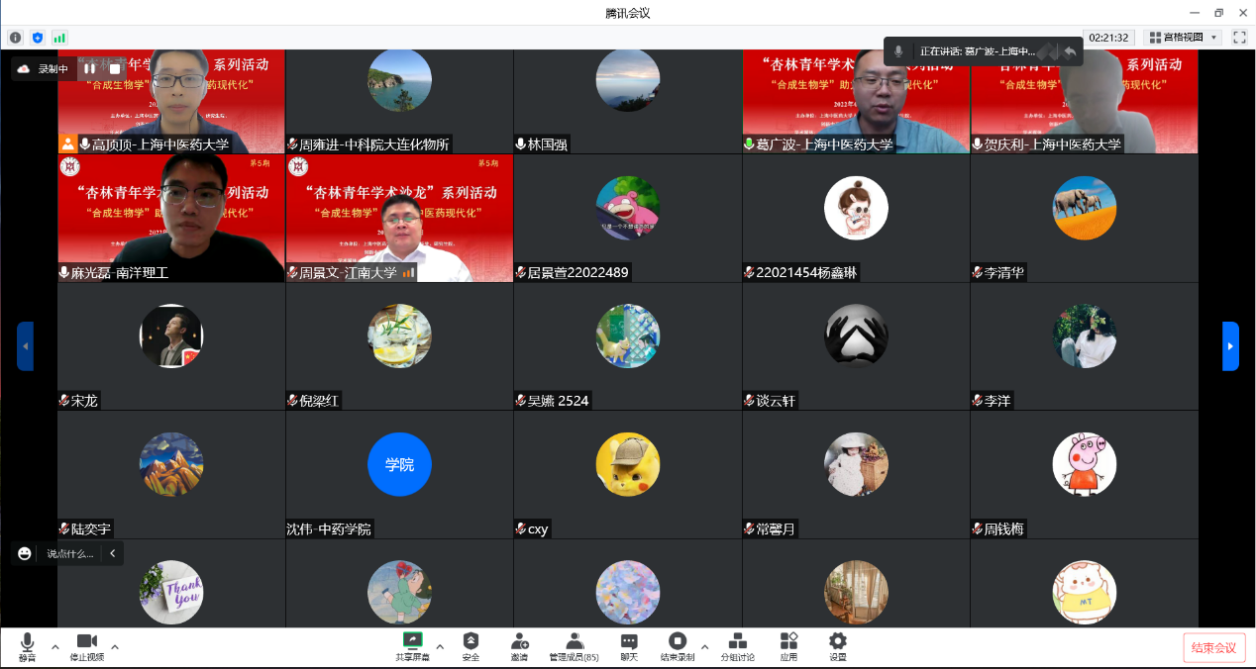7月6日,由上海中医药大学人事处、科技处、研究生院、创新中药研究院、交叉科学研究院联合主办,Chinese Medicine and Culture编辑部作为学术媒体支持的“杏林青年学术沙龙”系列活动第五期在线上如期举办。