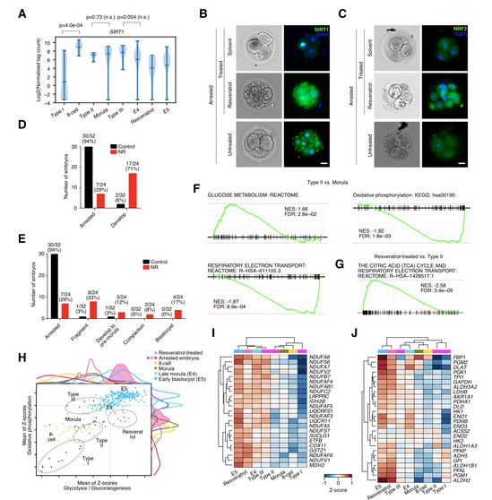 图3:白藜芦醇和NR通过调节SIRT1活性在一定程度上激活阻滞胚胎继续发育