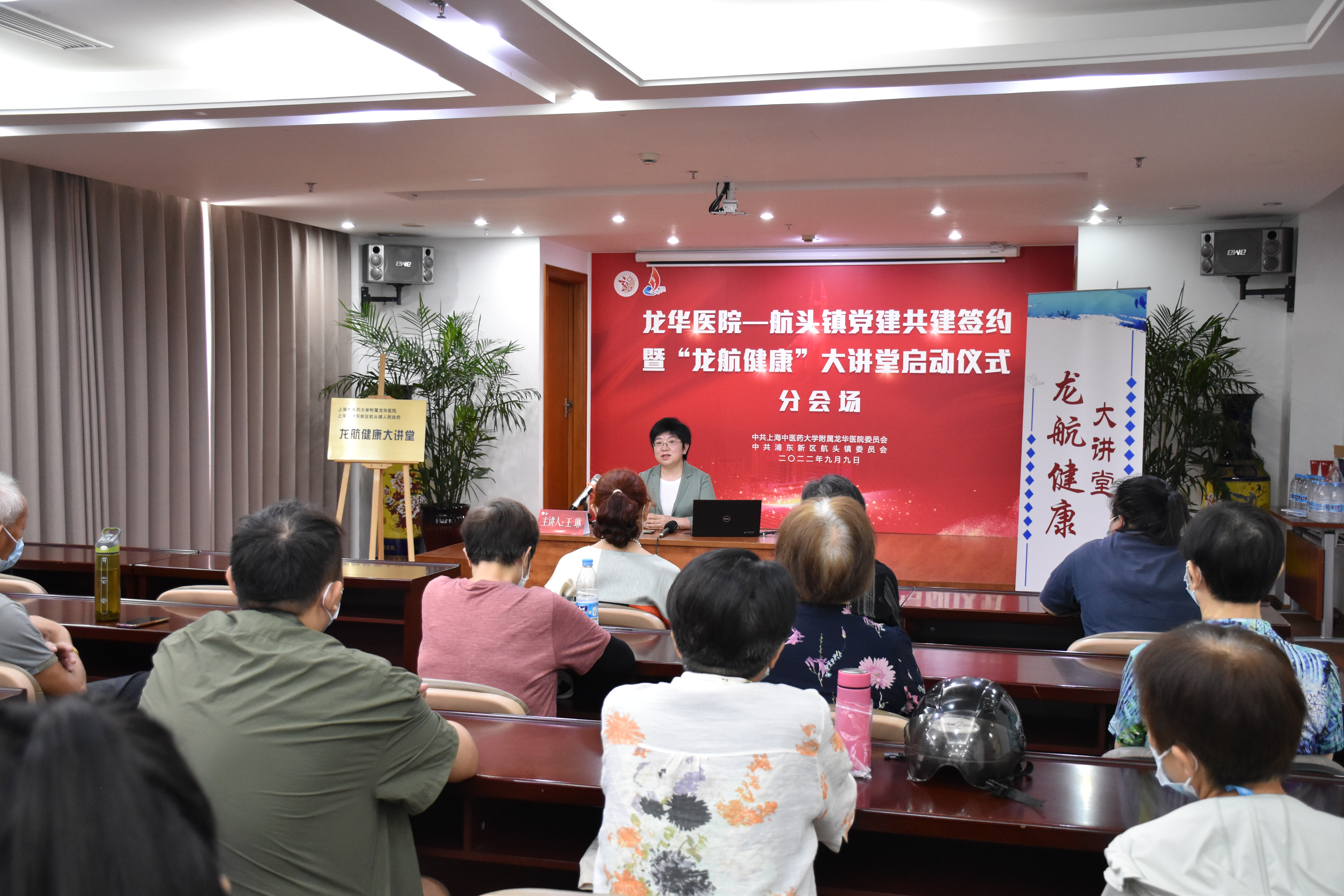 为满足城乡居民多层次医疗卫生服务需求,推动龙华医院国家医学中心建设,以高质量党建引领高质量发展,迎接党的二十大胜利召开,9月9日上午,附属龙华医院与航头镇举行党建共建签约暨“龙航健康”大讲堂启动仪式。