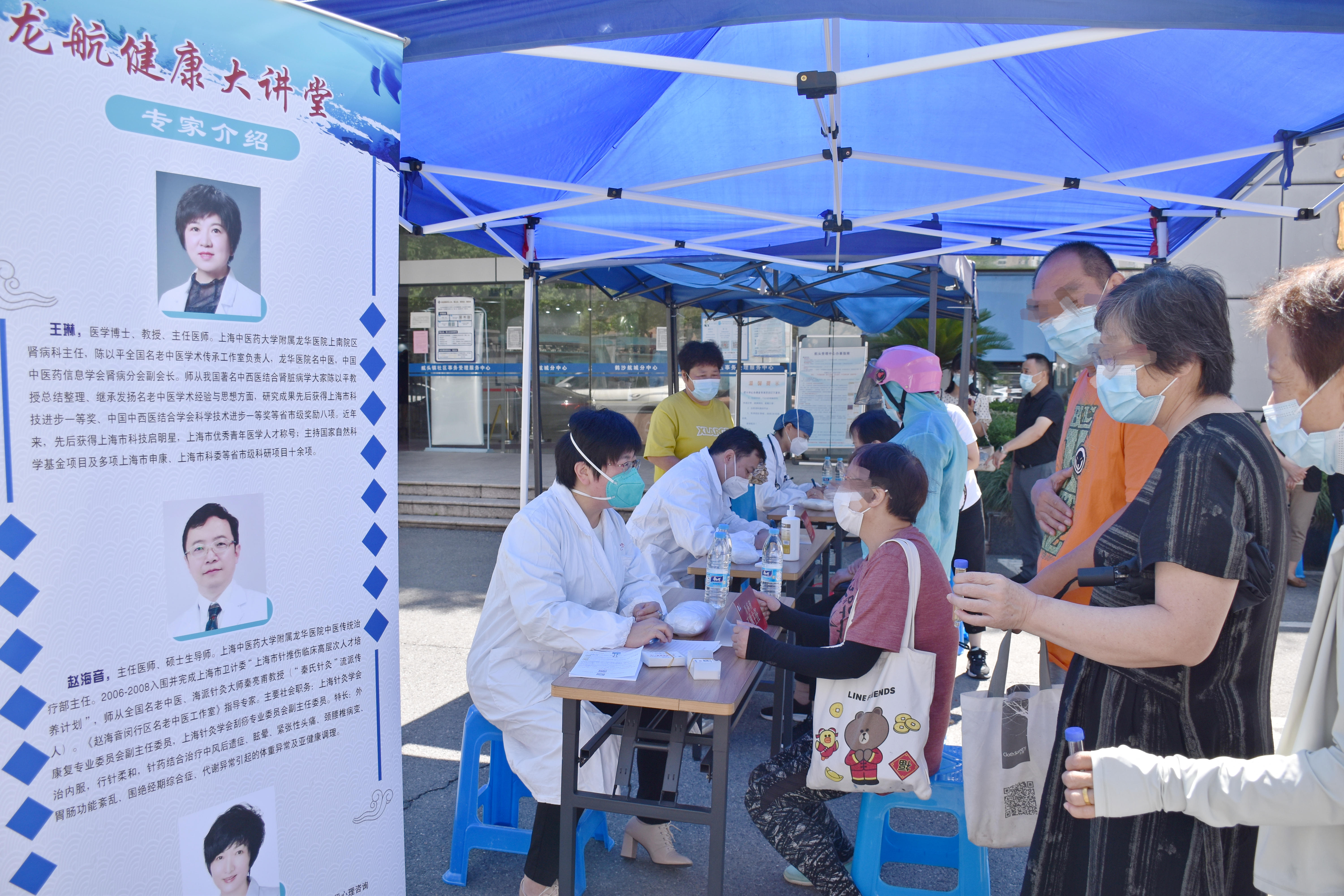会后,在鹤沙航城社区卫生服务中心分会场举办“龙航健康大讲堂”首场活动,龙华医院肾病科主任医师王琳、传统治疗部主任医师赵海音,心病科主任医师王娟为航头片区市民代表进行科普授课和专家义诊活动。
