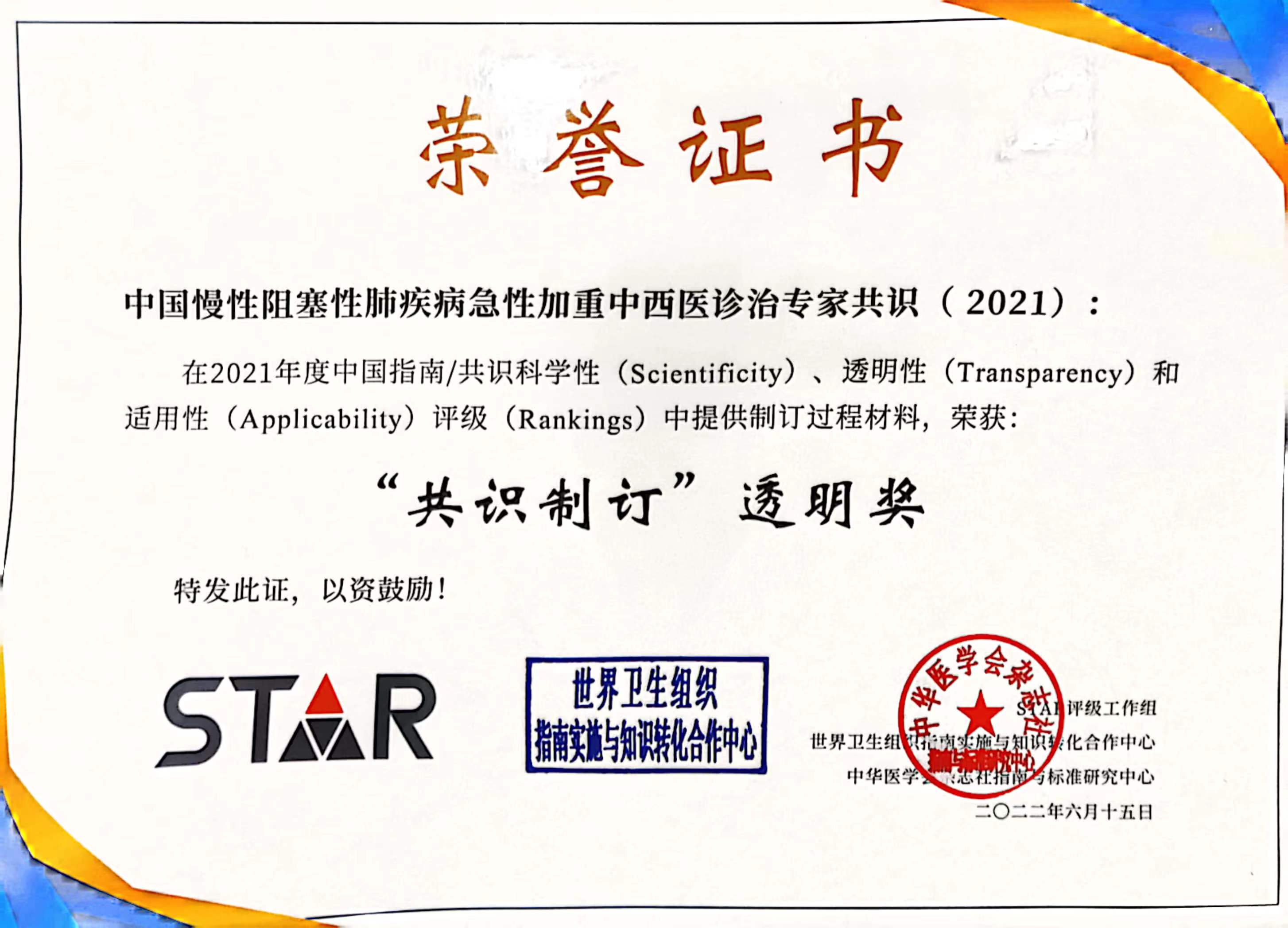 近日,由世界卫生组织指南实施与转化合作中心、中华医学会杂志社指南与标准研究中心对2021年度中国指南/共识的科学性、透明性和适用性进行全面评价,上海中医药大学急危重症研究所所长、上海中医药大学附属龙华医院急诊科主任方邦江教授以执笔和通讯作者撰写的《中国慢性阻塞性肺疾病急性加重中西医诊治专家共识(2021)》表现成绩突出,评分位列传统医学共识排名第13名,并荣获“共识制订”透明奖。