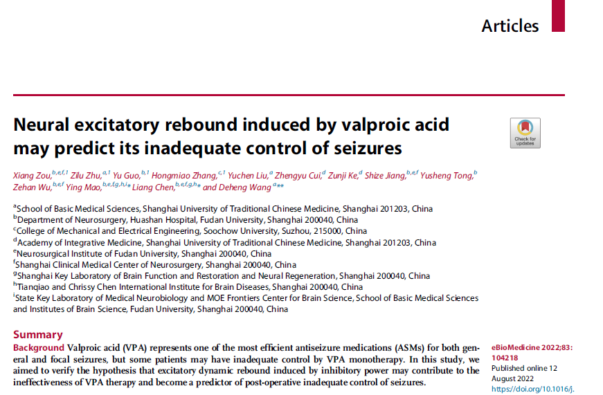 我校基础医学院王德恒在The Lancet子刊eBioMedicine发文揭示丙戊酸钠抑制癫痫发作的神经机制