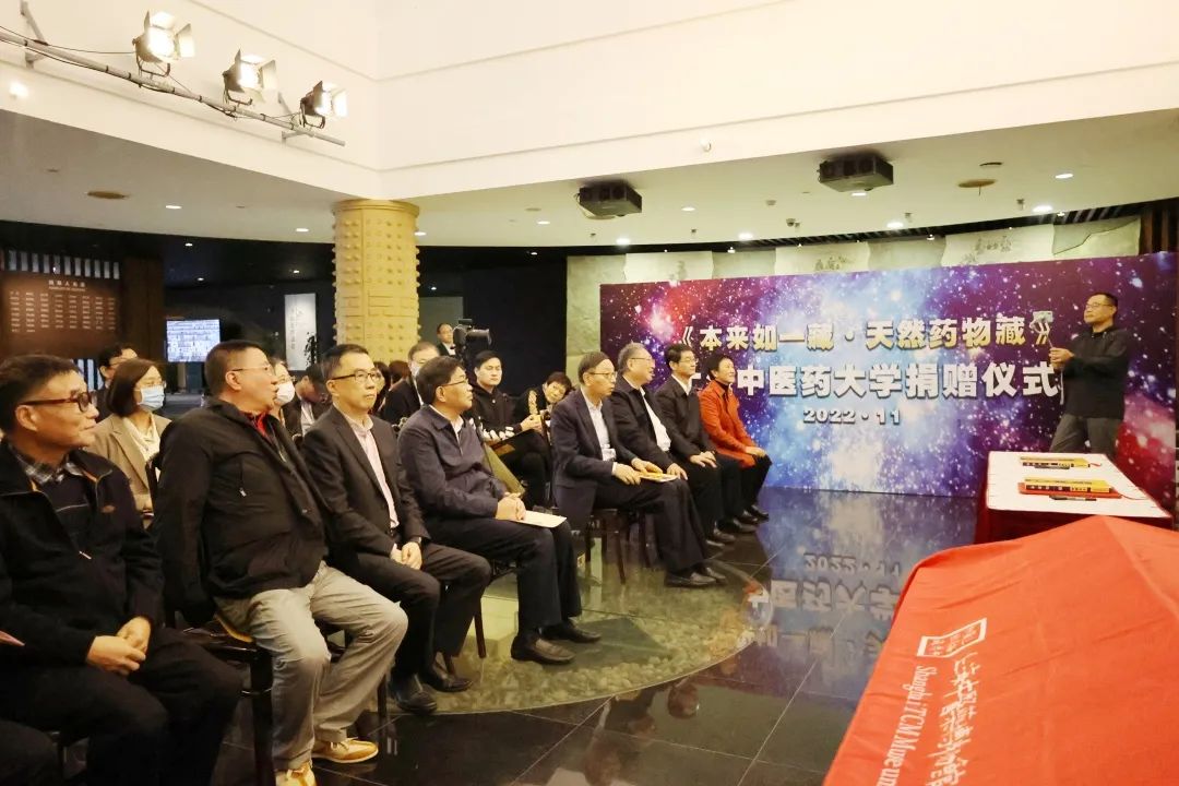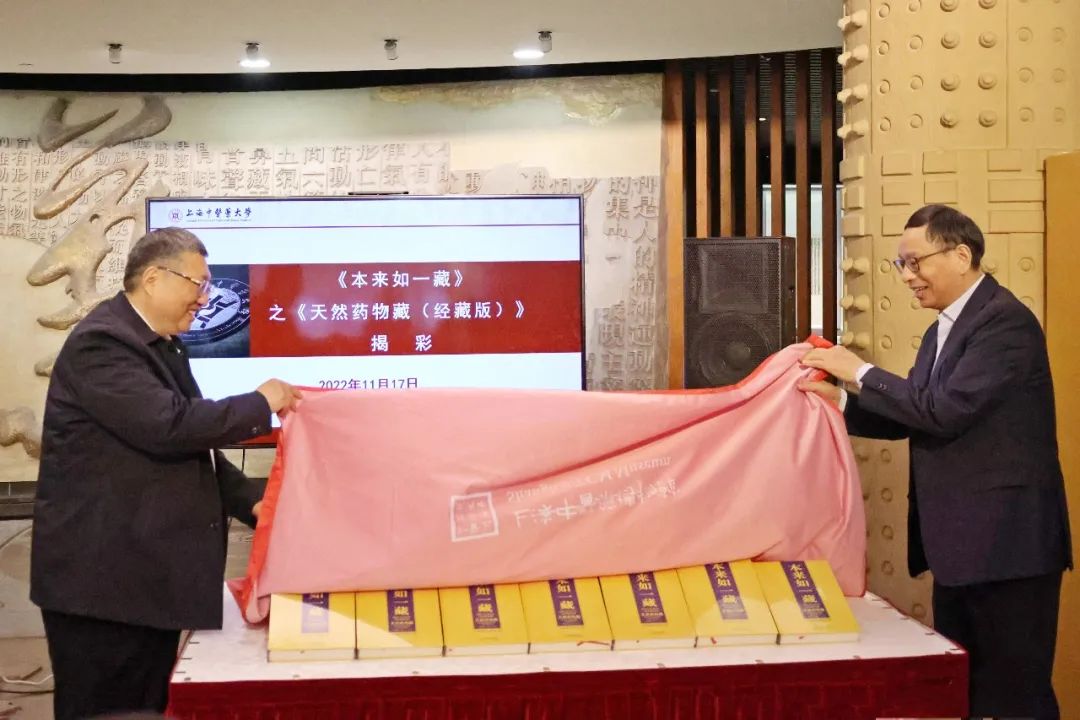 11月17日下午,《本来如一藏》之《天然药物藏(精藏版)》藏书捐赠仪式在上海中医药博物馆一楼序厅举行。中国农工民主党中央副主席、上海市人大常委会副主任蔡威,中国农工民主党中央联络工作委员会主任黄泰康,中国农工民主党上海市委专职副主委姚捷,上海中医药大学党委书记曹锡康,上海中医药大学副校长杨永清,《本来如一藏》捐赠方代表及其他受邀嘉宾参加仪式。