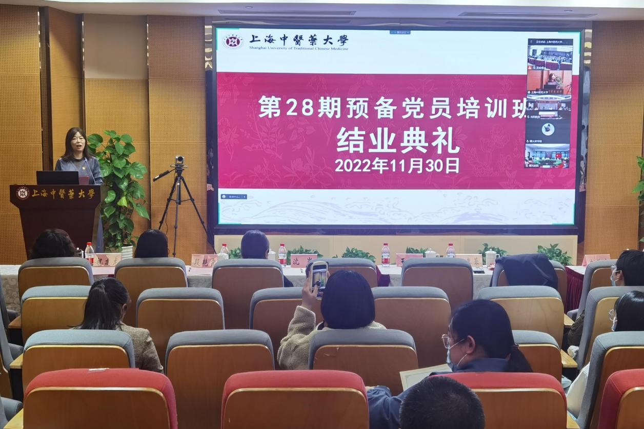 11月30日下午,校第28期预备党员培训班结业典礼在行政中心301会议室举行,附属龙华医院、曙光医院、岳阳中西医结合医院分别采取线下集中、线上同步的形式参会。校党委副书记、副校长、党校校长朱惠蓉,校党委组织部部长兼党校常务副校长王璐,各相关党组织负责人,培训班班主任、指导老师及全体学员共同参加结业典礼。结业典礼由王璐主持。