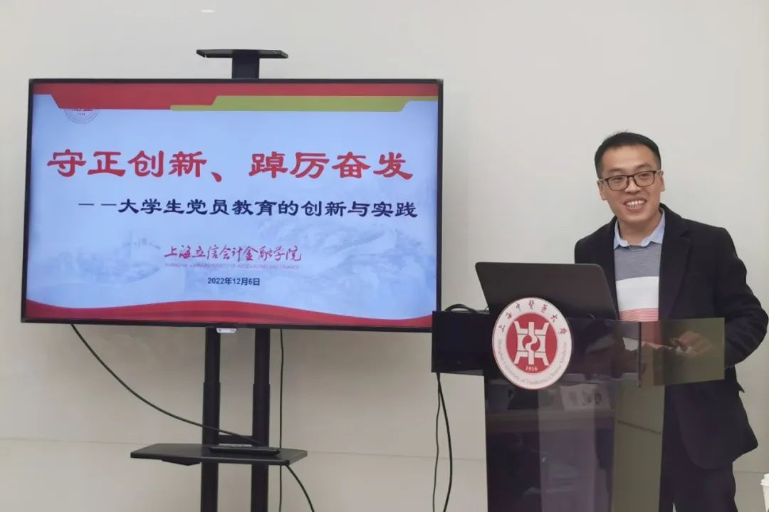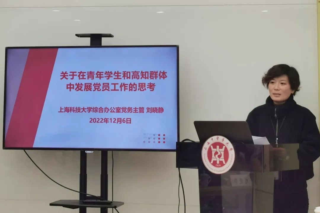 会上,上海第二工业大学经济与管理学院组织员李利平以“以党的二十大精神为引领,以三个抓手为保障,着力把牢发展‘入口关’”为主题、上海立信会计金融学院序伦书院组织员李星星以“守正创新、踔厉奋发:大学生党员教育的创新与实践”为主题、上海科技大学综合办公室党务主管刘晓静以“关于在青年学生和高知群体中发展党员工作的思考”为主题、上海健康医学院护理与健康管理学院组织员何雅敏以“新时代医学生党员发展的思考和实践”为主题、上海中医药大学党委组织员徐琳以“落实立德树人根本任务,做好发展党员工作‘守门员’”主题分别作交流发言。