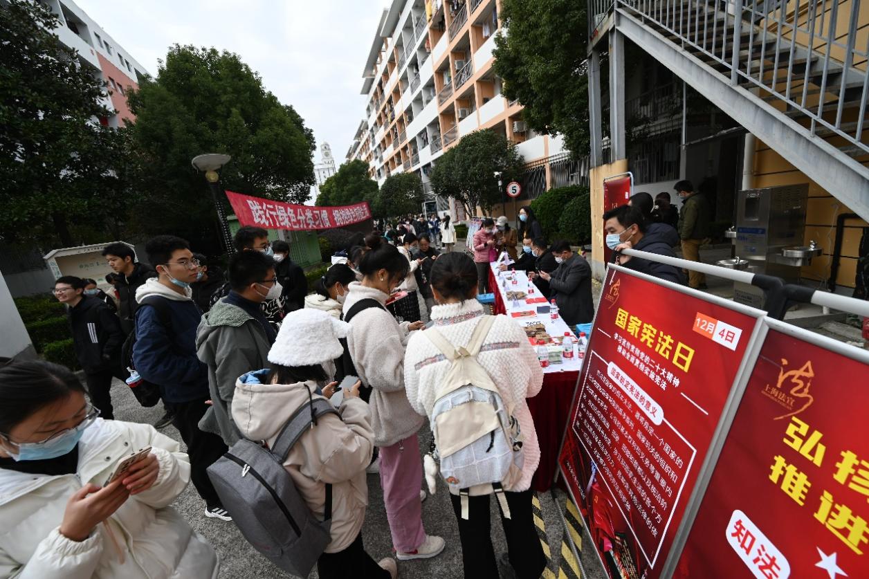 12月7日,为进一步加强校园法治教育,学校联合张江司法所在学生园区开展宪法宣传周线下主题教育。现场邀请律师为师生提供义务法律咨询,并派发《中华人民共和国宪法》读本等。活动现场气氛热烈,师生纷纷踊跃参与法律知识竞答,律师们也积极为师生解答法律问题。本次主题教育不仅有效推进法律服务在校园的覆盖面,营造了我校浓厚的法治宣传教育氛围,同时也提高了师生的法制观念,增进了对宪法精神实质的感悟与理解,引导师生学会运用法律武器保护自身权益的意识和能力。