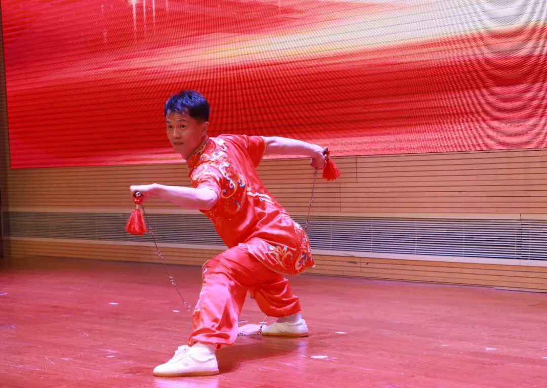 日本籍硕士生石川明的太极拳二十四式表演和青年班主任王恩龙老师的九节鞭表演将活动氛围推向了高潮。师生合作,为在场来宾呈现了一场精彩绝伦的视觉盛宴。