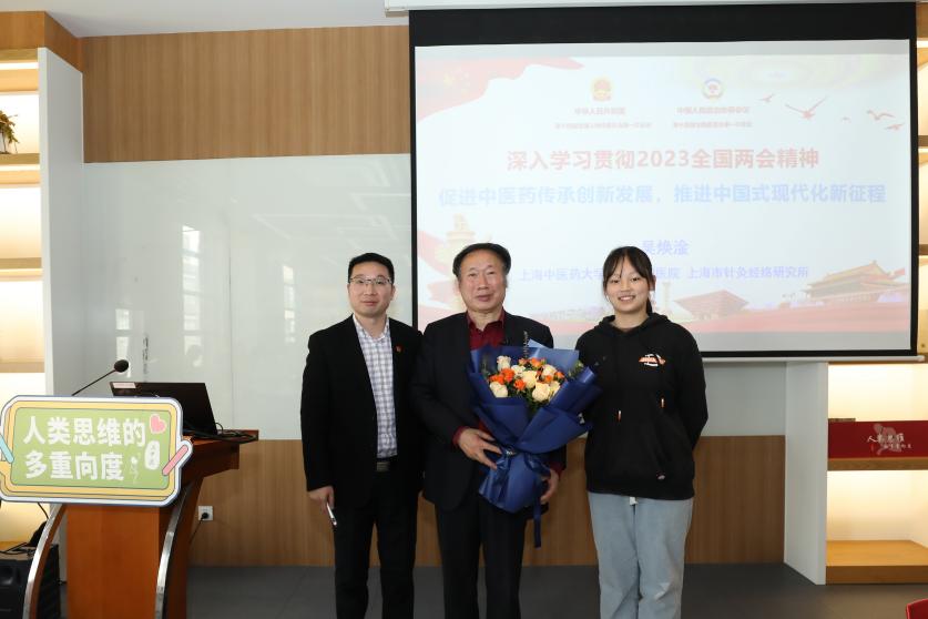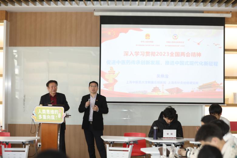 3月28日上午,全国人大代表、我校首席教授、上海市针灸经络研究所所长吴焕淦走进《人类思维的多重向度》课程课堂,以“时代之思:两会精神与中医药发展蓝图”为题,进行深入浅出的授课,给学生们带来一场精神盛宴。