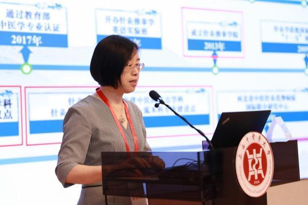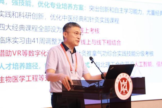 在专题论坛上,陕西中医药大学乔海法教授分享《医教协同视角下的针推人才培养》,广州中医药大学张正教授分享《针灸推拿学加强中医经典学习应用的探索实践》,承德医学院杨志新教授分享《针灸教学实践与创新》,河北中医药大学佘延芬教授分享《以“三新一高”理念促进针灸推拿学专业内涵式建设》,我校虎力副教授分享《基于人工智能的课程思政素材数据库的构建与教学设计——以针灸经典课程为例》,我校赵玲教授分享《以穴位微视频促进学生自主学习的教育实践》。