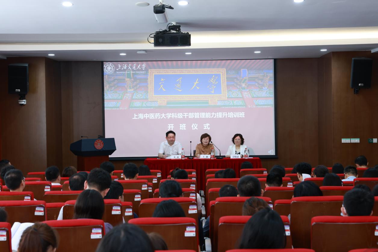 上海交通大学国际与公共事务学院党委书记章晓懿致开班欢迎辞,她介绍了上海交通大学发展历程、历史沿革,以及国际与公共事务学院近年来取得的成就。她希望学员们将学有所得、学以致用作为学习目标,通过培训优化知识结构,为上海中医药大学的高质量发展谱写新的篇章。