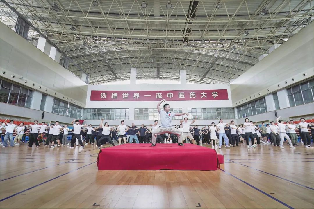 为进一步加强上海武术教练员师资队伍建设,提高社会武术执教人员的专业技能与教学训练水平,同时也为储备上海武术院(上海市健身气功管理中心)原创“动感武术”的师资教学力量,8月21日-22日,由上海武术院(上海市健身气功管理中心)主办,上海中医药大学体育部、上海环体体育发展有限公司承办的2023年上海市武术教练员培训暨动感武术教学推广培训在我校体育中心举行,本次培训共吸引来自本市各武术协会、武术馆校、体育俱乐部、中小学校等单位的近300名学员参加。上海武术院(上海市健身气功管理中心)院长(主任)陈皓,国家体育总局武术运动管理中心原推广培训部主任章王楠,国家体育总局武术研究院专家委员会专家、中国武术九段王培锟,中国武术九段、中国健身气功九段虞定海,上海武术队原总教练张福云,浦东新区学生阳光体育大联赛负责人王前广,我校体育部党支部书记龚博敏,体育部主任、党支部副书记陆松廷等出席开班仪式。
