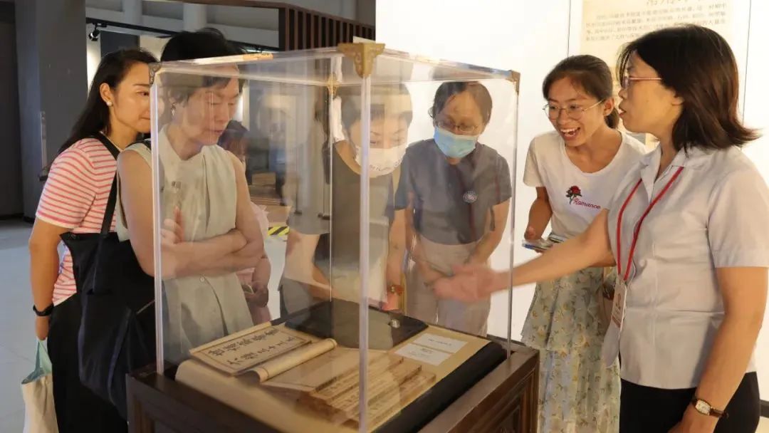 8月28日活动当天,上海中医药博物馆展宣部主任俞宝英带领新生参观“灵兰墨韵”临展,她将近代出版界和中医界在中医书刊刊印和中医药知识传播方面所做的努力和取得的成就娓娓道来,引导新生体悟中医名家学术思想和成长之路,激励他们学习中医名家一丝不苟的治学精神和坚定不移的爱国精神。(上海中医药博物馆)