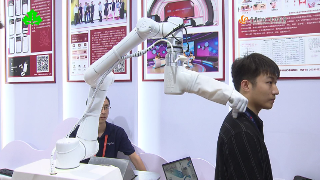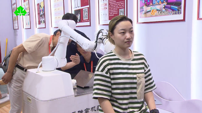 上海中医药大学展区工作人员:目前它这样的一个手法学名叫一指禅,进行仿生的一个按摩头,我们大学教授专家采集下来的数据手法,它指法力度都和专家相吻合的。