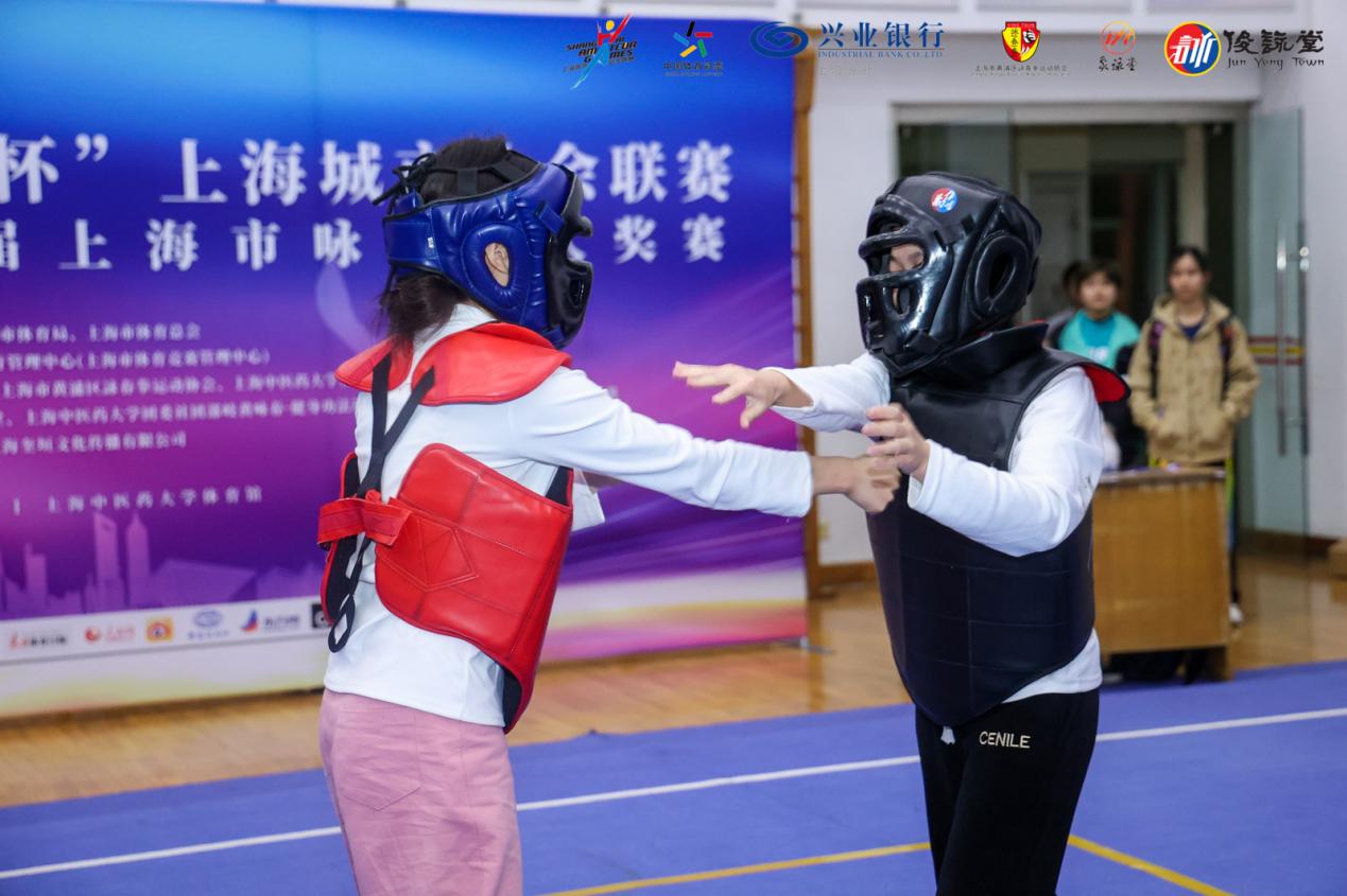 11月8日,2023年“兴业银行杯”上海城市业余联赛“聚咏堂杯”第六届上海市咏春拳大奖赛在上海中医药大学体育中心举行。本次大赛由上海市体育局、上海市体育总会指导,上海市社会体育管理中心(上海市体育竞赛管理中心)主办,上海大咏合体育发展有限公司、上海市黄浦区咏春拳运动协会、上海中医药大学体育部承办,来自复旦大学、上海交通大学、上海应用技术大学、上海第二工业大学、上海中医药大学近50名大学生参赛。本次大赛旨在为沪上大学生提供一个展示咏春拳学习成果和促进咏春拳爱好者沟通交流的平台,上海中医药大学岐黄咏春拳社指导老师王宾、刘佳丽带队参赛。