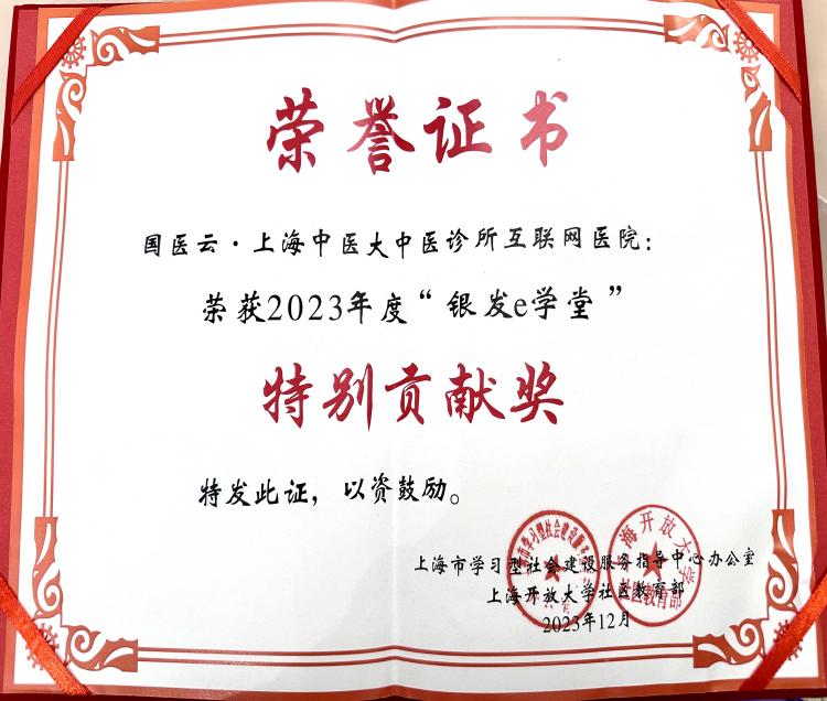 国医云·上海中医大中医诊所互联网医院获“银发e学堂”特殊贡献奖