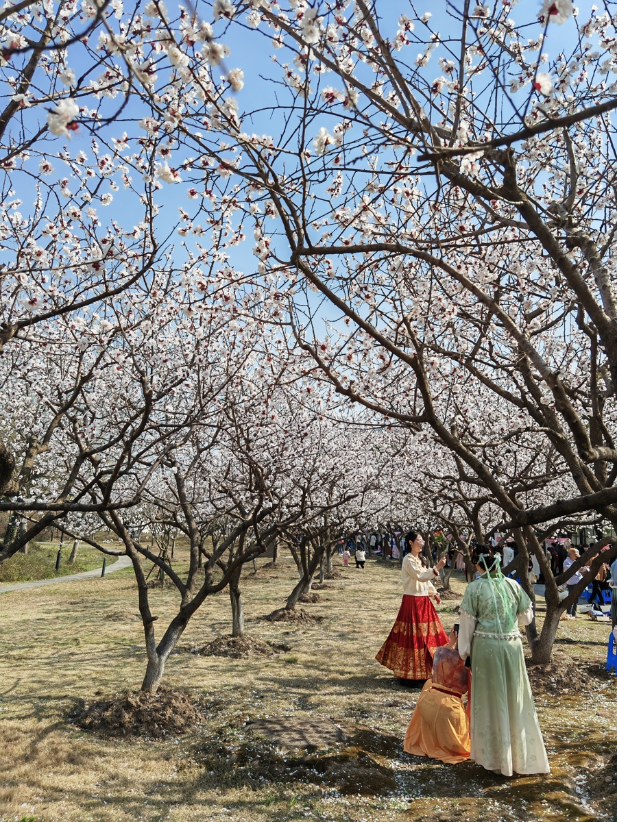 上观新闻:春分已至,杏花盛放,沪上20多校大学生身着汉服在大片杏林下“琴棋书画茶”