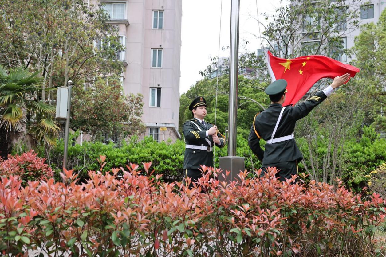 4月3日8时,活动在上海市浦明师范学校附属小学军乐队的鼓号声中准时拉开序幕,我校国旗护卫队9位学生迈着铿锵坚定的步伐,护卫国旗来到升旗台前,升旗手李伟、陆世宇完成了庄严肃穆的升旗仪式。