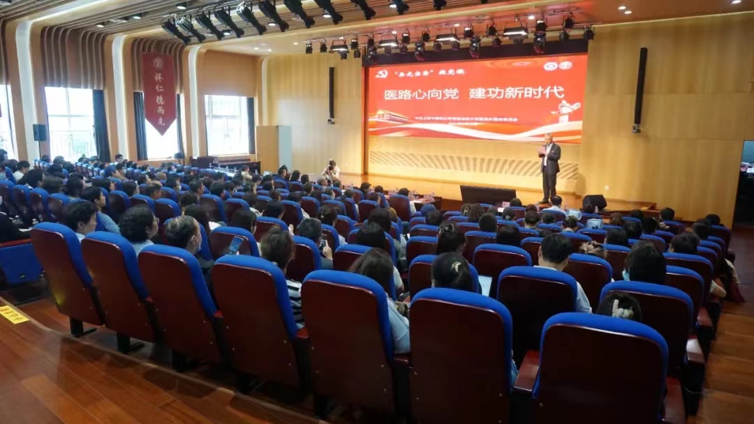 我校原副校长余小明,上海市名中医、上海中医药大学终身教授、岳阳中西医结合医院原院长严隽陶,上海市卫生健康委干部人事处处长倪艳华,学校职能部门负责人参加,医院近300名党员观摩学习。微党课由岳阳中西医结合医院党委副书记、纪委书记赵庆主持。