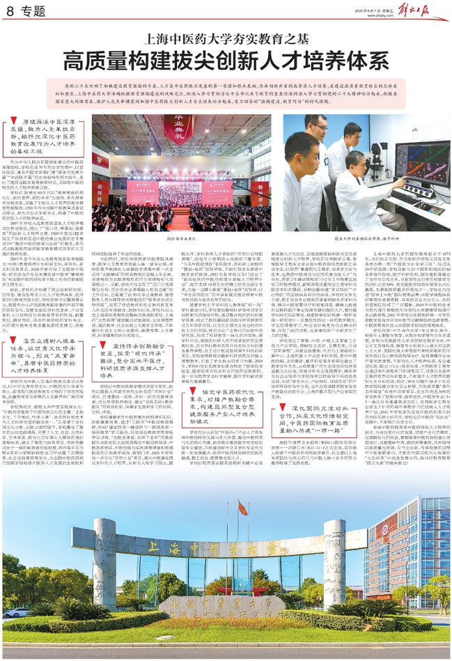解放日报8版:上海中医药大学夯实教育之基高质量构建拔尖创新人才培养体系