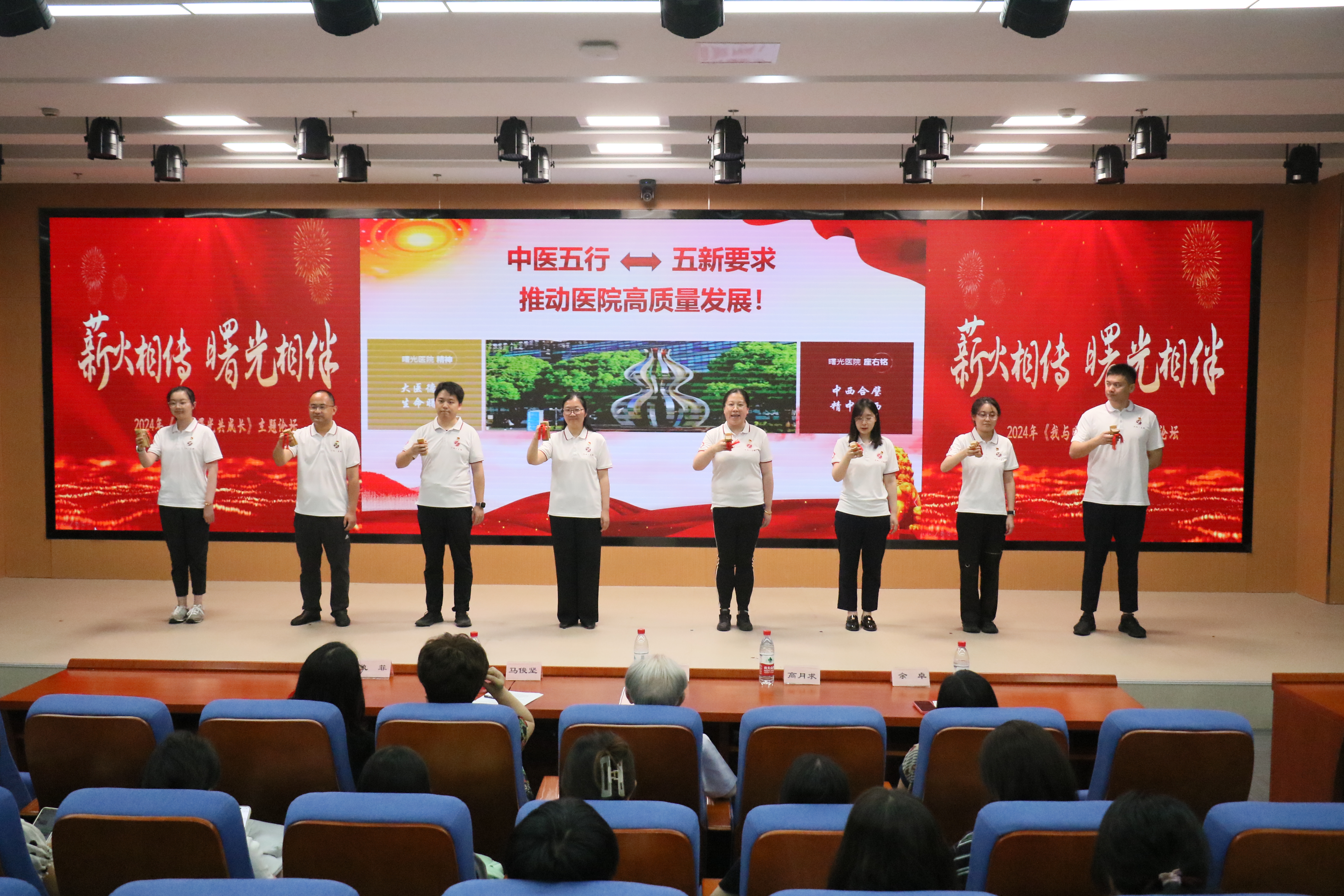 大会最后,新老职工共同唱响院歌《永远和曙光在一起》,“大医精诚”的院训和“大医德泽,生命曙光”的精神随着词曲一起,被再一次接力传递。(曙光医院)