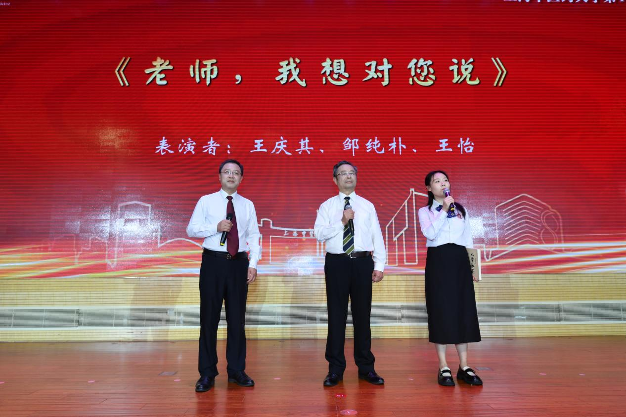 5位青年教师联袂演唱系列快闪歌曲《上学歌》《开往清晨的午夜》《追光者》《最美的太阳》,为所有教师送上节日的温馨祝福,9月9日,上海中医药大学聚焦“大力弘扬教育家精神,加快建设教育强国”主题举办教师节庆祝大会,300余名师生参会。情景表演、故事讲述、对话朗诵等多种形式,呈现了学校系统教师们在育人方法探索、引领学生成长、师道精神传承等方面的生动实践。