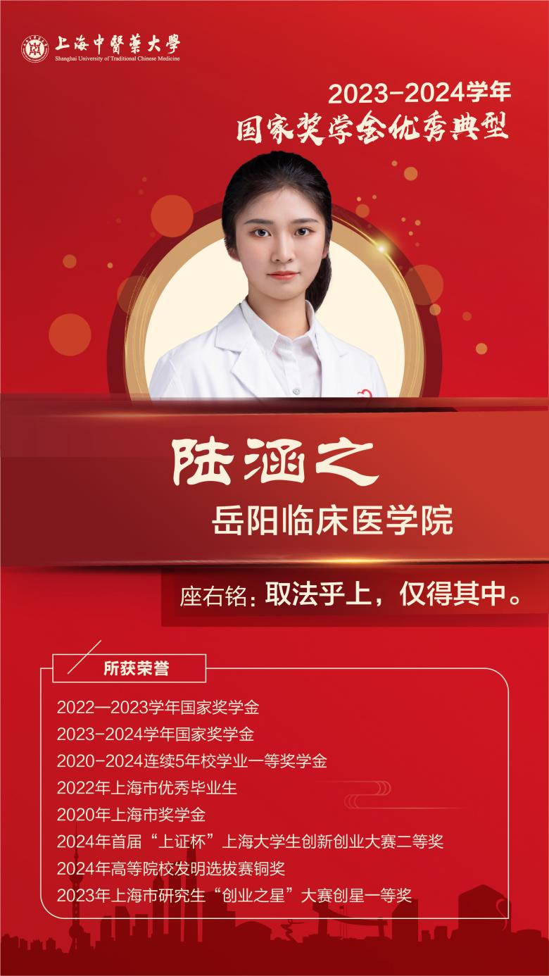 榜样引领 砺志笃行 | 上海中医药大学2023-2024学年国家奖学金获得者风采展示(二)