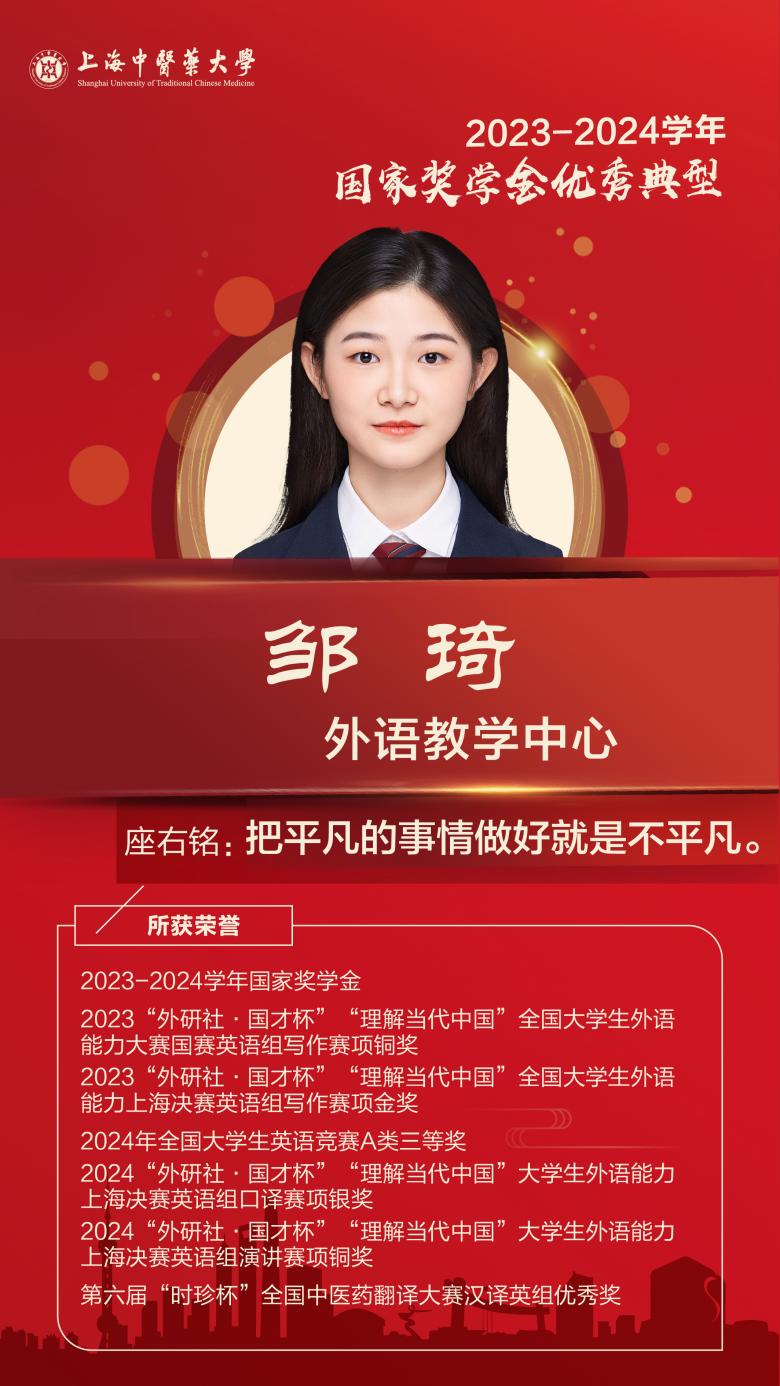 榜样引领 砺志笃行 | 上海中医药大学2023-2024学年国家奖学金获得者风采展示(三)