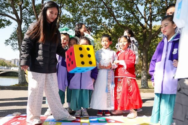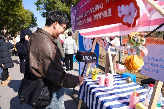 华东理工大学、上海理工大学、上海交通大学医学院、上海师范大学、上海应用技术大学以及上海中医药大学六所高校开设摊位,上海二十余所高校及上海中医药大学附属中小学百余名师生齐聚杏花湾,共同投入这场别开生面的心理健康教育盛会。活动现场设十个各具特色的“传统文化+”心理集市摊位,非遗正念扎染、传统音乐接龙、中式水拓画、解忧小狗治愈站、晶韵芳心手作、膜法调色盘、投壶沙包、压力锤等传统运动、艺术健心方法等一系列浸润式互动体验活动吸引了众多师生。同学们在各个摊位前排起长队,积极参与,现场气氛热烈而欢快。