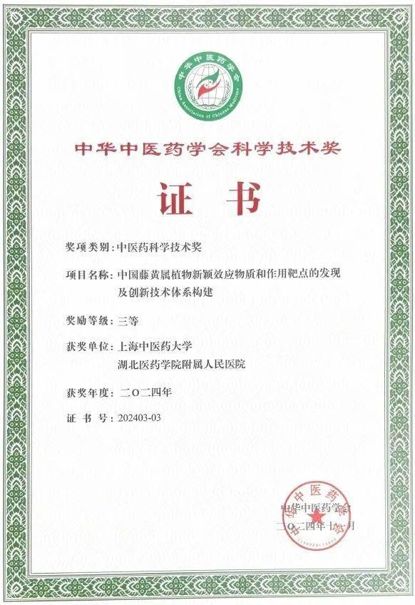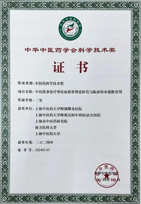 近日,2024年度中华中医药学会科学技术奖颁奖仪式在第七届岐黄论坛上举行。我校系统共5项成果获奖,包括中医药科学技术奖4项(二等奖2项、三等奖2项),青年科技创新奖1人。