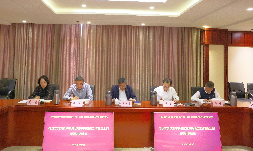 5月6日下午,校党委常委会“第一议题”暨党委理论学习中心组集体学习在行政中心428会议室举行。会议传达学习了习近平总书记在中央周边工作会议、中共中央政治局第二十次集体学习、庆祝中华全国总工会成立100周年大会上的重要讲话精神。校领导班子成员、党委职能部门负责人参加学习。